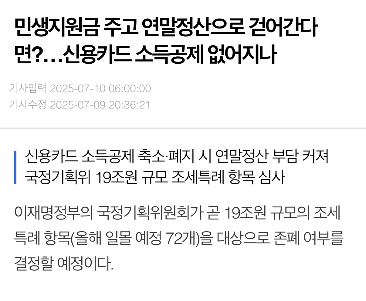 민생지원금(소비쿠폰)을 주고 얻는 결과는 연말정산 신용카드를 없앤다는 것이다