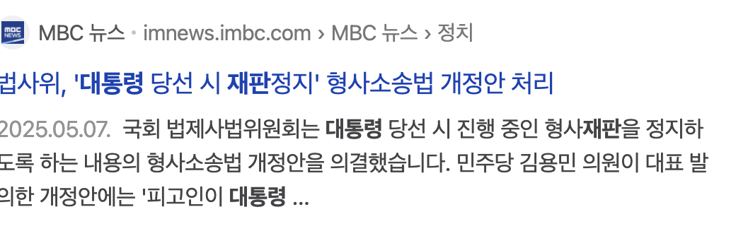당선 시 형사재판을 정지하면 내란이라고 하는 윤석열정부도 내란이라고하는 재판을 그럼 임기 끝나고 했어야하는 논리다.