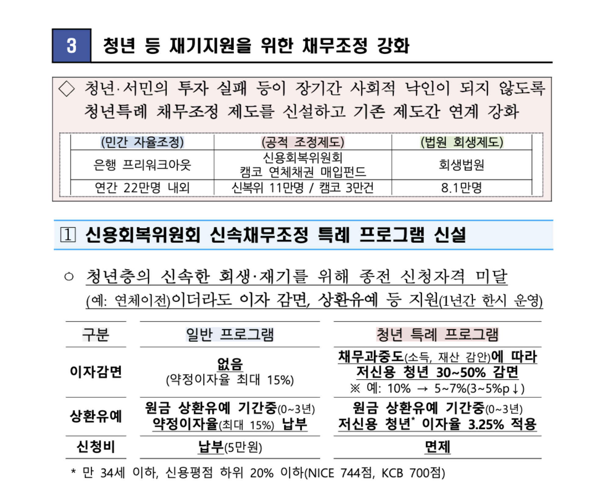 하지만, 현재 이재명 정부의 정책은 채무조정 이원금 및 이자 조정이 아니라 빚을 아예 없애는 것이다.