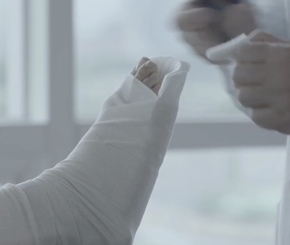 깁스는 석고를 이용하여 고정하는 방식인데, 물에 석고붕대를 적시고 환부에 Pading 하며 경화시키고 고정하는 방식으로
