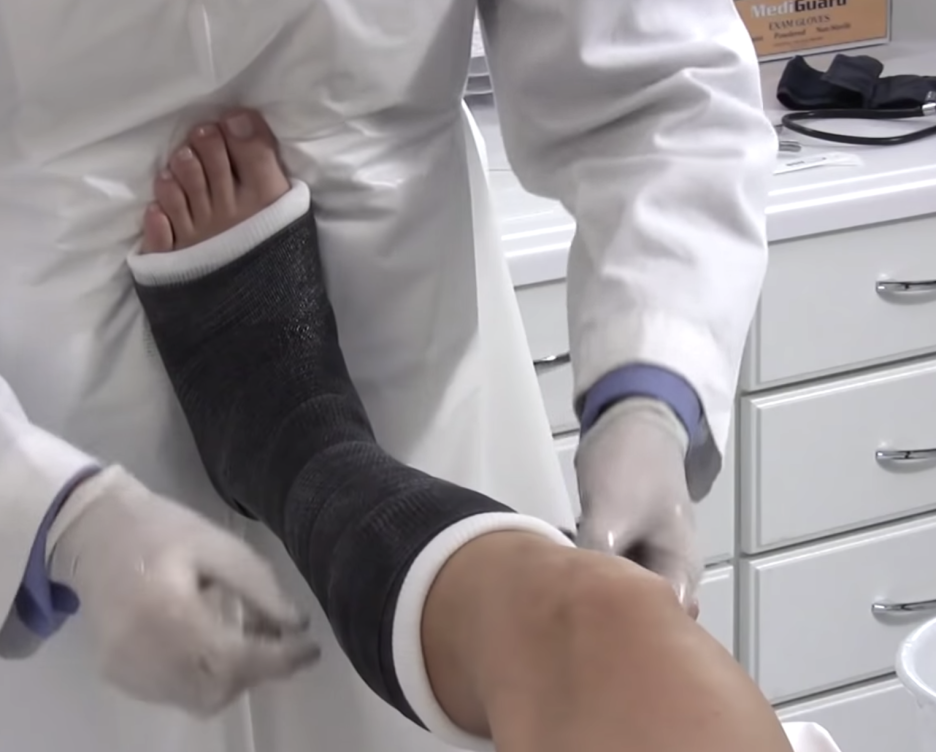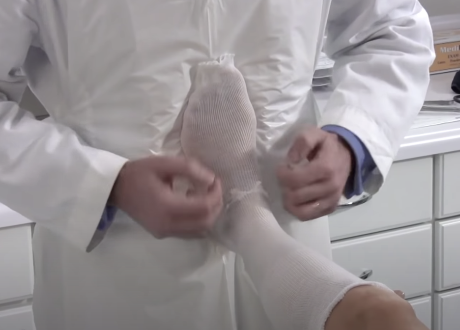 깁스는 일반적으로 석고를 감기 전에 스티키넷을 먼저 양말처럼 신고 그 위에 솜 붕대를 감고 진행한다.